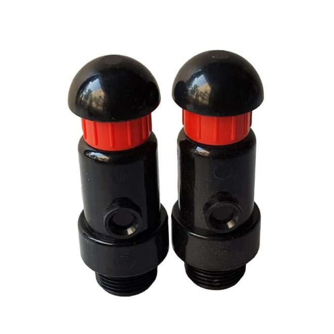 The Air / Vacuum Release Valve allows trapped air to escape from your irrigation lines and prevents vacuum formation when the system is shut off. This accessory maintains smooth water flow, reduces water hammer risk, and protects piping, especially in long lateral lines.